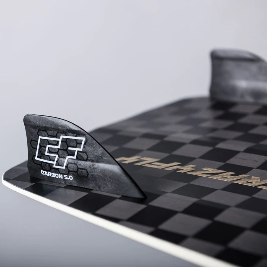 The Elite IV is minimal in design and maximal in performance. The design shows the elegance of carbon fiber engineering in its purest form. Full carbon fiber hand made construction without any top sheets minimizes weight and highlights the natural raw beauty of carbon fiber for an unbeatable look. On the water the Elite IV stands out from the crowd. We believe it is the most flexible carbon board and is extremely comfortable to ride. With the double concave bottom channels, it is a smooth ride no matter the conditions. The low weight is immediately noticed during maneuvers, jumps and board offs. The Elite IV has quite a lot of pop thanks to the latest HMX-CF3 carbon fiber construction with the fastest possible power transfer.