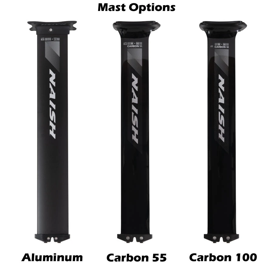 - The new Naish C100 monocoque carbon mast is the pinnacle of cutting-edge engineering and design, offering unparalleled performance benefits. Crafted with a combination of 3K and UD carbon fibers, it provides superior bending and torsional rigidity while achieving a ?direct drive? feel for maximum control. Additionally, its dual expanding foam core allows for an exceptionally light weight build that enhances speed and control while preventing corrosion thanks to the integration of (2) 12 mm stainless steel inserts laminated into the mast structure as well as a molded fuselage connector which serves as a protective barrier against corrosion.
