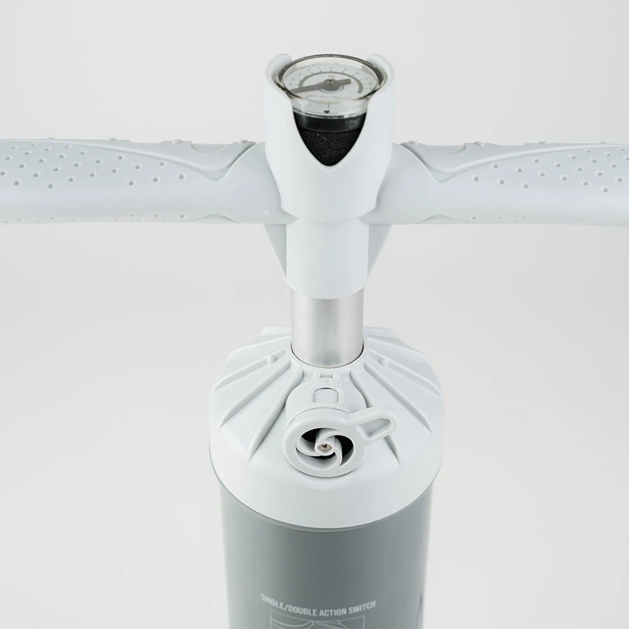 The high quality Pump V3 delivers effortless double-action inflation and features a switch so you can manually change to single-action and achieve higher pressures.