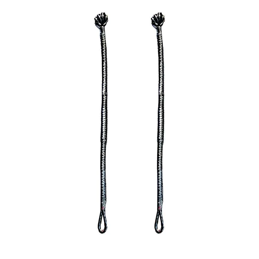These pigtails connect to the bridle lines coming off the kite and allow you to hook up your flying lines. Always check kite pigtails for wear and tear.