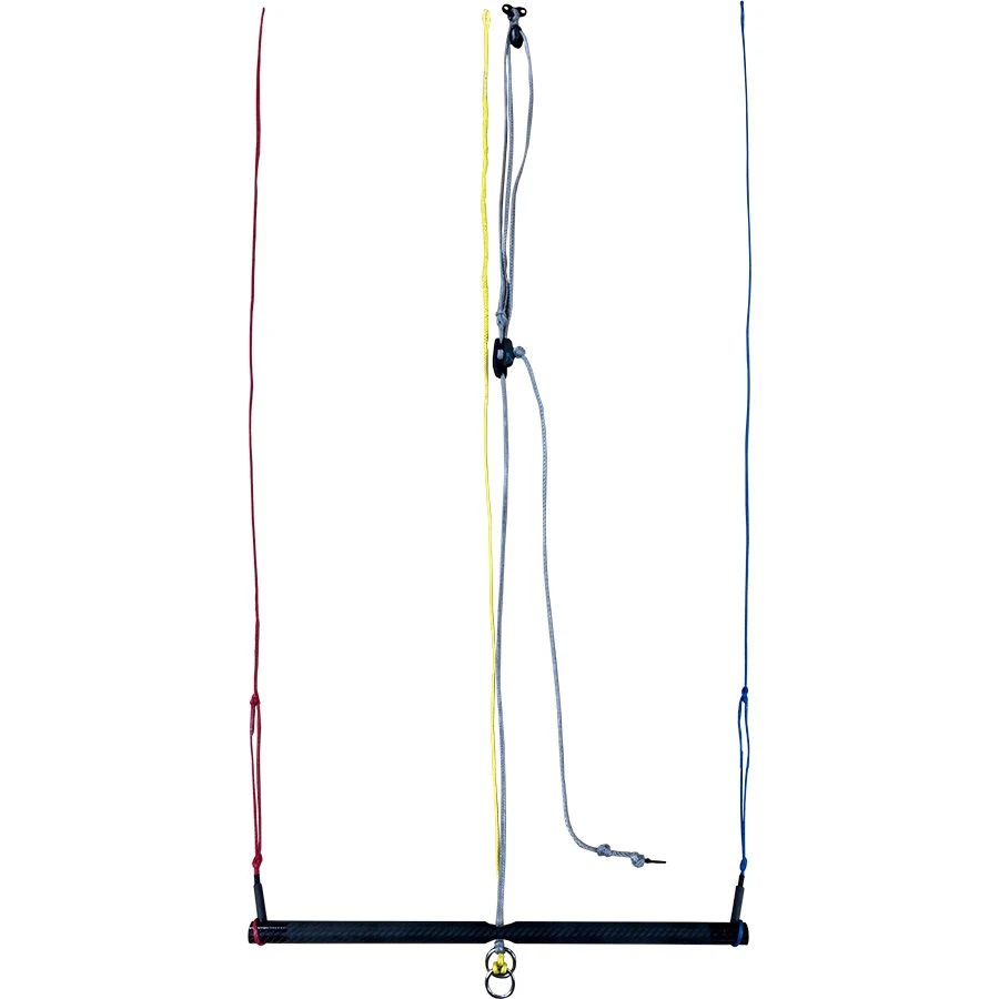 After more than three years of development and testing, we have finalized the KISS Race Control System version of the KISS Kite Bar. The Race bar was developed with a much longer throw, a 4:1 fine tune trim system, a double ring, shackle style connection, and a single front-line flagout.